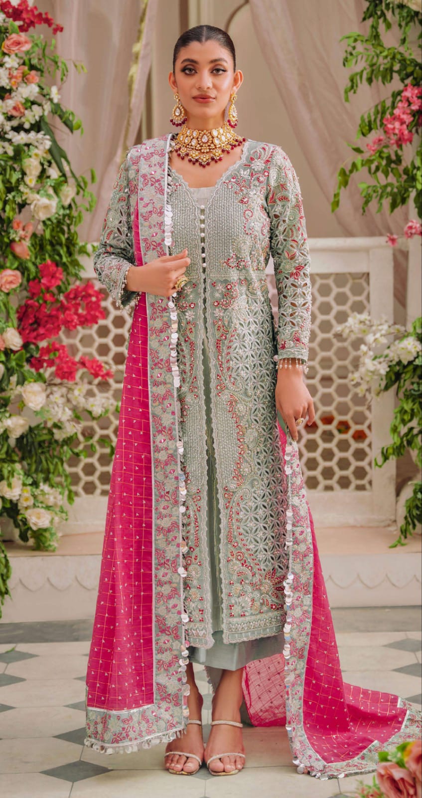 EMBROIDERD CONTRAST DUPATTA ON LURUX NET 2.5M
